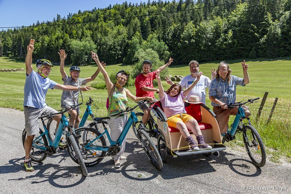We have joined the “Jurassic Vélo Tour” to offer simple routes departing from Saint Laurent en Grandvaux. We tested the “Jurassic Vélo Tour” itineraries and designed our own circuits for people with disabilities and their caregivers.