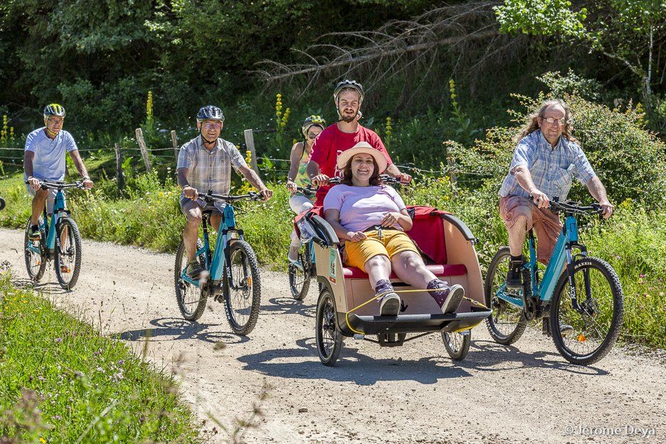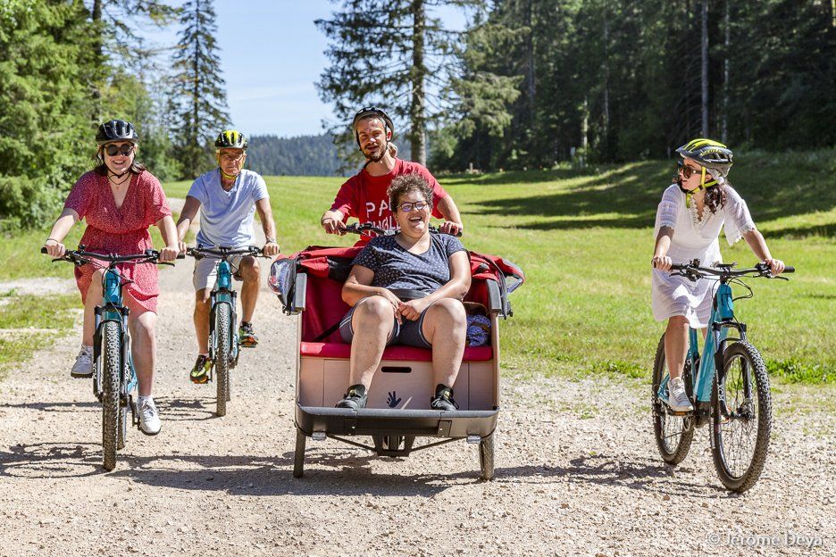 By becoming a resource center for various soft mobility equipment, we wish to become a local reference for ESMS from Jura or from all over France, as well as all families staying at Ferme Léonie.